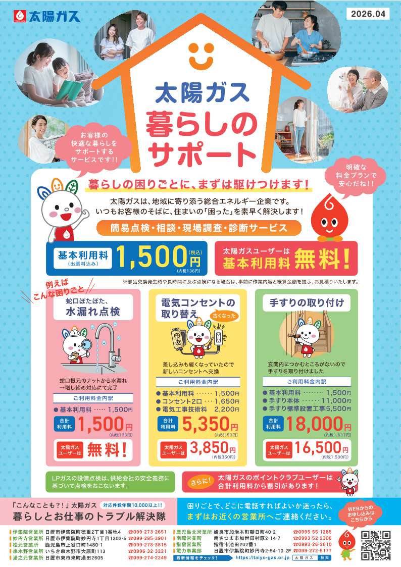 【指定店 太陽ガス】 暮らしのサポートサービスのご案内